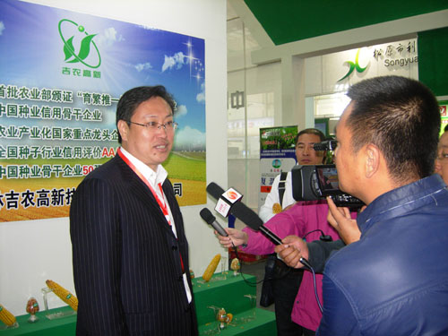 我公司展區(qū)更是成為各傳媒的焦點,吉林電視臺鄉(xiāng)村四季欄目、吉林省廣播電臺新聞欄目等媒體記者紛紛到我公司展廳采訪,公司總經(jīng)理臧薪宇代表公司接受了記者的專訪。